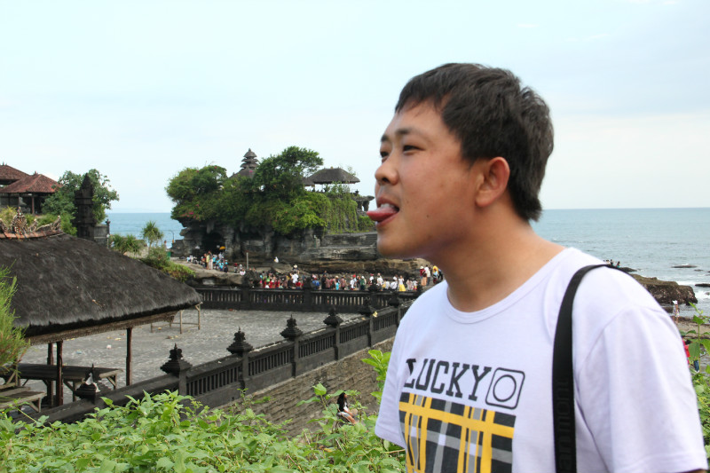 (海神廟)蓋在海邊的一塊巨巖上,它是巴厘島最著名的寺廟之一。漲潮時,此廟四周環繞海水,和陸地完全隔離。落潮時方可以相通。海神廟建于十六世紀,祭祀海神。