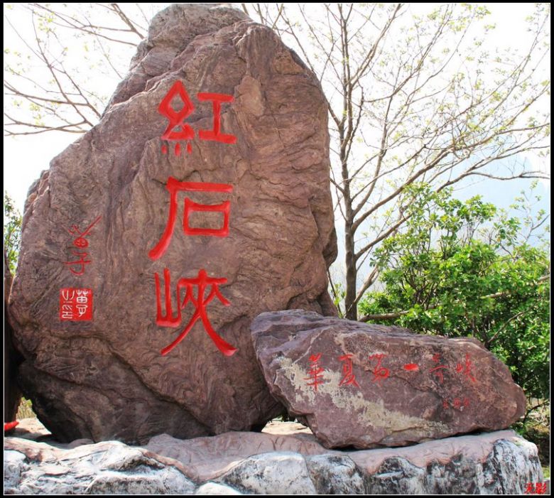 二、 紅石峽(溫盤峪)位于子房湖南,峪內夏日涼爽宜人,隆冬苔卉蒔草翠,故稱紅石峽。它集泉瀑溪潭澗諸景于一谷,融雄險奇幽諸美于一體,被風景園林專家稱贊為“自然界山水的精品”。谷里分布“白龍潭”、“黃龍潭”、“青龍潭”、“黑龍潭”、“臥龍潭”、“眠龍潭”、“醒龍潭”、“子龍潭”、“游龍潭”,構成“九龍溪”。還有“幽瀑”、“穿石洞”、“相吻石”、“雙獅汲水”、“孔雀開屏”、“棋盤山”等景觀。谷口南端有一狹窄的峽谷稱為“一線天”,且有瀑高50余米的白龍瀑布。兩側高山聳立,恰似一個石闕,正好是云臺山的西大門。