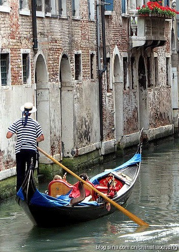 意大利的威尼斯建于島嶼之間,河流即街道。人們出門則乘坐岡朵拉。剛朵拉的造型獨(dú)特,裝飾華美,兩頭翹,底部平,狹長(zhǎng),專供游客抒情作秀。