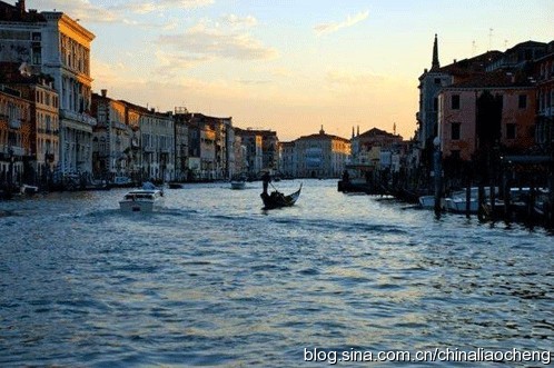 黃昏時(shí)分,夕陽(yáng)在水道邊的房子撒下一角,這時(shí),坐著岡朵拉,聽著船夫的歌聲,泛舟河上。遠(yuǎn)眺光影浮運(yùn)的建筑,體會(huì)威尼斯的旅情。
