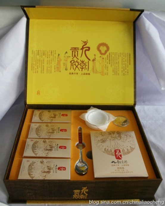 李時珍在《本草綱目》中稱之為“圣藥”。與人參、鹿茸并稱“中藥三寶”。有關阿膠的記載最早見于《神農本草經》,距今約有二千年。書中寫道:阿膠“生東平郡,煮牛皮作之,出東珂。”可見阿膠最初是用牛皮熬制的。傳至唐代,人們發現用驢皮熬的阿膠,藥用功效更好,便將牛皮改為驢皮,并沿用至今。