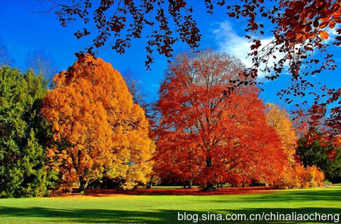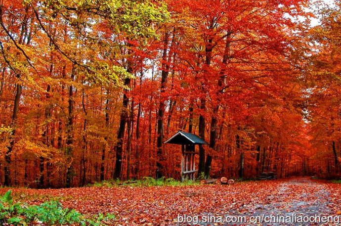 最動人是秋林映著落日。那酡紅如醉,襯托著天邊加深的暮色。晚風帶著清澈的涼意,隨著暮色浸染,那是一種十分艷麗的凄楚之美,讓你想流幾行感懷身世之淚,卻又被那逐漸淡去的醉紅所懾住,而情愿把奔放的情感凝結。