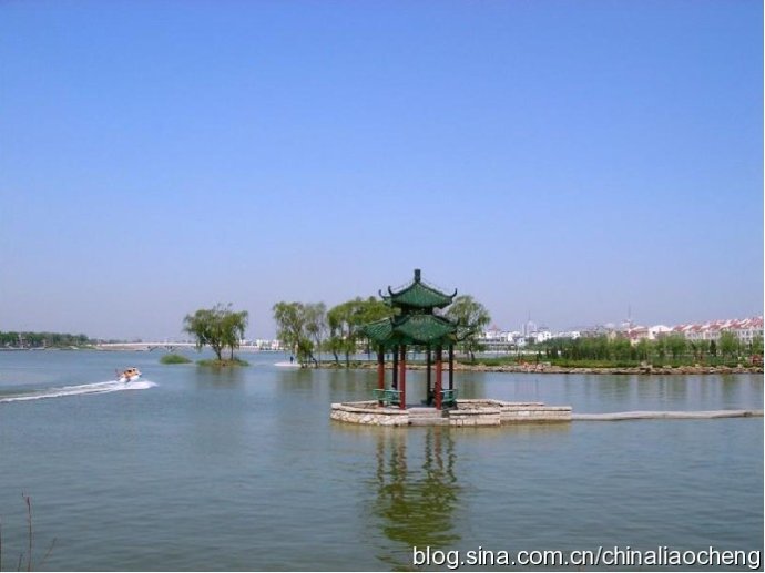 聊城是一座碧波蕩漾的水之城,是一個與水結緣的地方,說起聊城,總也離不開一個水字。聊城水資源非常豐富,流域面積30平方公里以上的河流有23條,流域面積在100平方公里的河流有3條,中華民族的母親河——黃河由西向東蜿蜒百里。素有“南有西子,北有東昌”之稱的東昌湖,千頃湖水,清如許,明如鏡,煙波浩淼的碧水環(huán)繞著保存完好的古城。聊城古城面積1平方公里,方方正正,大街小巷并列對稱,垂直交叉,就像一個巨大的棋盤飄浮在萬頃碧波上。古城中央聳立著號稱中國四大名樓之一的光岳樓,氣勢恢弘,巍峨壯觀。馳名于世的京杭大運河像一條玉帶繞城、湖而過。華夏名樓、歷史名城、江北名湖、世界名河共同織就了“城中有水,水中有城,城水一體,交相輝映”的獨特城市風貌。說起水城,我想大家一定會聯(lián)想到世界水城威尼斯,其實,早在威尼斯還是荒原一片的時候,聊城的運河里已經(jīng)是帆檣林立了。蜿蜒的水巷,流動的清波和豐富的水景觀讓聊城成為遠近聞名的江北水城。