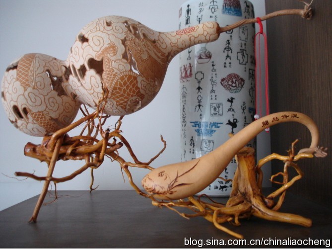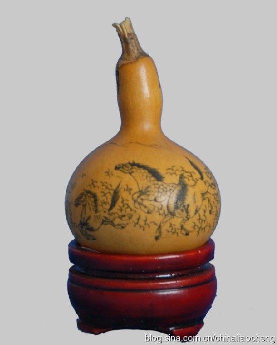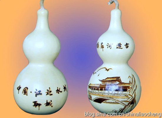 早期雕刻葫蘆大體分為三種:一是“一細葫蘆”。用料考究,精工細刻,圖案主要有“八仙人”、“二龍戲珠”及戲劇人物等。二是“二細葫蘆”。用料稍次,圖案主要是魚、蟲、鳥、獸等。三是“花葫蘆”。葫蘆著色后,用刀簡單地刻出豆腐塊絡或圖案,正中開個梅花蓋就為成品。產(chǎn)品主要銷往盛產(chǎn)蚰子(蟈蟈)的浙江、云南、貴州、陜西、山西等地,供裝蚰子之用。雕刻葫蘆,制作比較簡單,地方特色濃,深受人們的喜愛,成為聊城一種獨特的傳統(tǒng)工藝品。