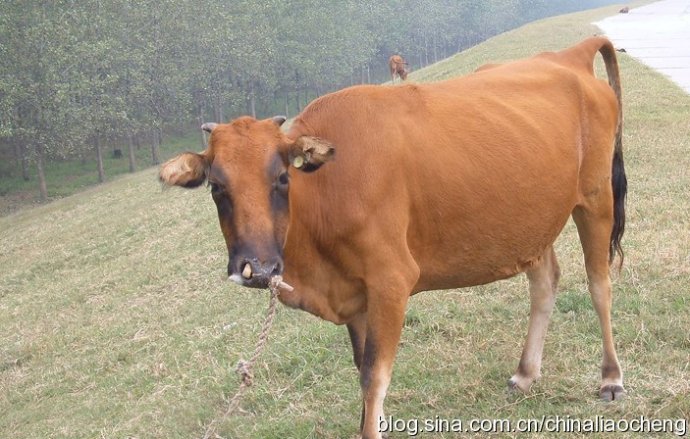 魯西黃牛,產于魯西平原,聊城飼養較多,是我國有名的役肉兼用牛種之一,在國際市場上享有盛譽。這種牛體驅高大,結構緊湊,肌肉發達,前身較寬厚,背腰寬平,毛色由棕紅到淺黃不一以黃色居多。多數牛具有完全或不完全的“三粉”特征。即眼圈、口輪、腹下及四肢內側為粉色。通常人們依據它們體型上結構的差異,分為高轅牛(大型)和抓地虎(小型)以及中間型三種類型。高轅牛體驅高大,四肢開闊,側望之近似正方形,行走迅速,步幅較大,適宜挽車運輸。抓地虎個體較矮。身驅較長,四肢粗壯,側望之近似長方形,步幅較小,速度較慢,但挽力和持久力較大,適于農田耕作。中間型牛兼有兩者的特征。