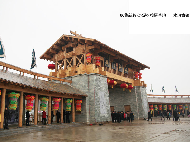 水滸古鎮(zhèn)是水滸影視基地的龍頭項目,位于東平湖東岸,東起255省道,西至東平湖湖岸線,南起大清河,北至老湖鎮(zhèn)朱橋村,總規(guī)劃面積約5平方公里,計劃總投資12億元,由東平縣水滸旅游開發(fā)有限公司投資興建。項目劃分為入口區(qū)、引景區(qū)、水滸影視城、水滸風情展示區(qū)、中心碼頭服務區(qū)、景觀地產(chǎn)區(qū)六大功能區(qū) 。主要建設引景大道、水滸廣場、水滸影視城、替天行道坊、東京汴梁御道、聚星樓、伏魔殿等景點。