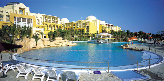 海洋溫泉以“海洋、溫泉、健康、娛樂、世界之旅”為基本構(gòu)想,以現(xiàn)存的或是歷史上曾經(jīng)存在過的世界各地溫泉設(shè)施為母題建筑背景,以北非摩洛哥建筑風格為主,融合中西建筑文化精華,將古老的建筑文化與現(xiàn)在設(shè)計理念相結(jié)合,呈現(xiàn)地中海浪漫風情。
