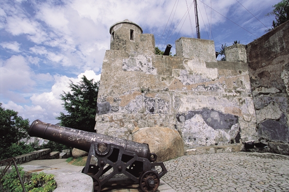 媽閣炮臺(又名圣地亞哥炮臺,位于西灣西端)建于一座歷史悠久的古堡上,距今350多年歷史。澳門政府在公元1622年前修筑炮臺,以防守澳門的入口水路。當年炮臺面積縱一百五十步,橫五十五步,距離海面約三十尺,版權所有山東聊城聊之旅國際旅行社有限公司,轉載必究!適用于槍戰。古堡內,設有小天主教堂,名為圣雅各伯小堂。教堂內有精致的圣各伯雕像以及母花地瑪、伊莎貝皇后的瓷磚畫像。