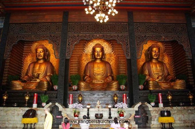 佛光山是臺灣最大的佛教道場,創(chuàng)辦人星云法師為提倡“人間佛教”之道,一磚一瓦建立起佛光山,成為臺灣信眾最多、最負盛名的佛教圣地。佛光山經(jīng)過長期修葺,寺院建筑規(guī)模宏偉,大雄寶殿、大悲殿、大智殿及大愿殿是四幢主要建筑,疏落有致地坐落在園區(qū)內(nèi)。大雄寶殿占地1800坪,是園中最大的殿宇,內(nèi)供三尊大佛皆高二丈余,崇偉肅穆;大殿四面墻壁有14,800個小佛龕,在萬燈照耀下,使大雄寶殿更顯莊嚴神圣。