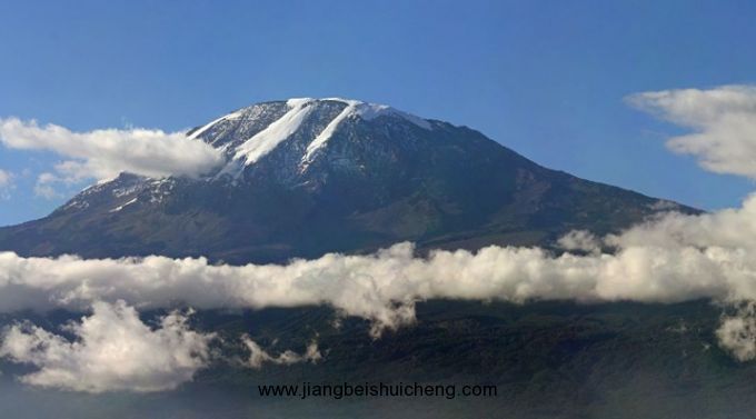 被譽(yù)為“赤道雪峰”乞力馬扎羅山位于赤道附近的坦桑尼亞東北部。在赤道附近“冒”出這一晶瑩的冰雪世界,世人稱奇。酷熱的日子里,從很遠(yuǎn)處望去,藍(lán)色的山基賞心悅目,而白雪皚皚的山頂似乎在空中盤旋。常伸展到雪線以下飄渺的云霧,增加了這種幻覺。山麓的氣溫有時高達(dá)59℃,而峰頂?shù)臍鉁赜殖T诹阆?4℃,故有“赤道雪峰”之稱。在過去的幾個世紀(jì)里,乞力馬扎羅山一直是一座神秘而迷人的山——沒有人真的相信在赤道附近居然有這樣一座覆蓋著白雪的山。