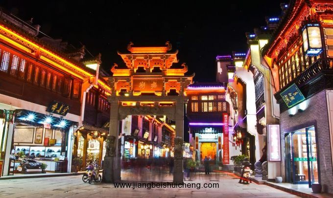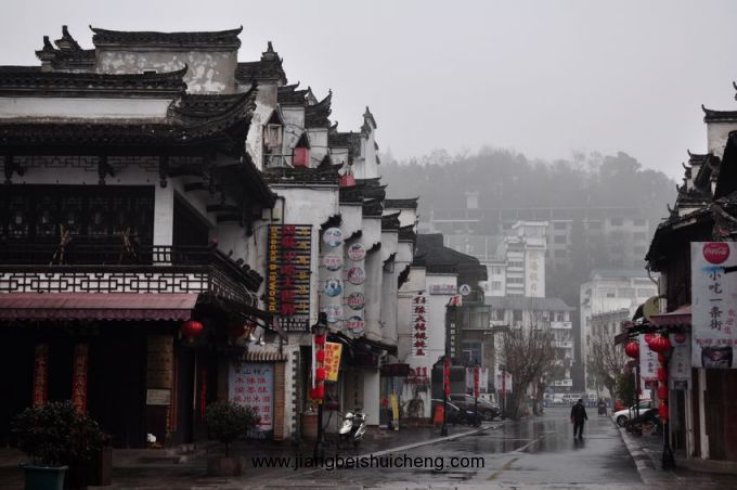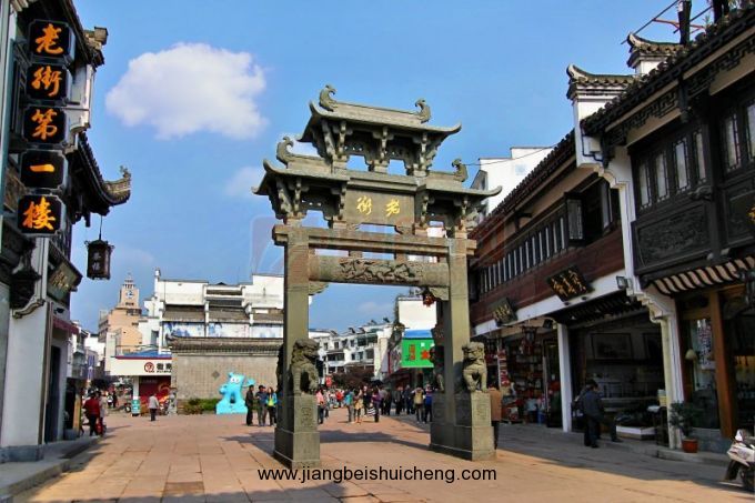 這里全是馬頭墻、小青瓦、白粉墻;磚木結構的鋪面,精巧玲瓏的樓閣、鏤刻精美的花紋圖案,加上小門、大堂、天井、屋與屋之間的深窄小巷,錯落別致,熱鬧繁華,顯示了徽派建筑格局的古樸典雅,別有情趣。為了適應旅游事業的發展,還在專辟的一段“古代街”上設有茶樓、酒肆、書場、墨莊,古趣盎然,吸引了眾多的中外游客前來觀光、購物。