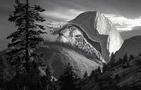不光自然界自己能夠造出詭異的奇觀來,其實(shí)我們?nèi)祟愖约河袝r(shí)候也是奇跡的創(chuàng)造者。圖片中富蘭克林臉龐的下半部輪廓就是人類的杰作。森林與農(nóng)田之間的鮮明輪廓對(duì)比可謂這幅圖片的點(diǎn)睛之作。只是我們?nèi)祟惖膭?chuàng)造往往并不是奇觀,而是對(duì)大自然的毀滅……
