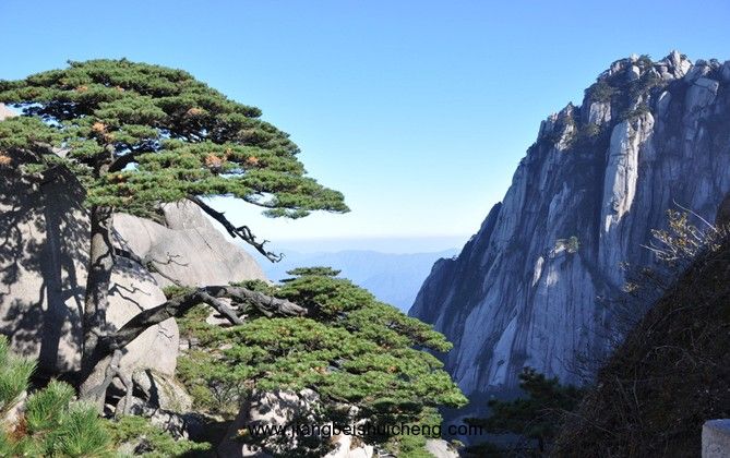 黃山位于安徽省黃山市西北風景秀麗的皖南山區,向以“三奇”、“四絕”名冠于世,其 劈地摩天的奇峰、玲瓏剔透的怪石、變化無常的云海、千奇百怪的蒼松,構成了無窮無盡的 神奇美景。黃山一九九零年被列入“世界遺產(文化和自然)”名錄。