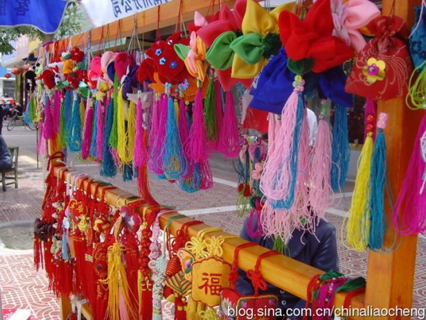 端午節(jié)佩香囊,不但有避邪驅(qū)瘟之意,而且有襟頭點(diǎn)綴之風(fēng)。香囊內(nèi)有朱砂、雄黃、香藥,外包以絲布,清香四溢,再以五色絲線弦扣成索,作各種不同形狀,結(jié)成一串,形形色色,玲瓏奪目。