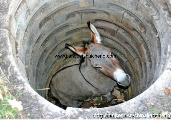 有一頭驢,掉到了一個很深很深的廢棄的陷阱里。主人權衡一下,認為救它上來不劃算,走了。只留下它孤零零的自己。每天,還有人往陷阱里面倒垃圾,驢很生氣:自己真倒霉,掉到了陷阱里,主人不要他了,就連死也不讓他死得舒服點,每天還有那么多垃圾扔在他旁邊。