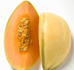 甜瓜又稱甘瓜或香瓜。它是夏令消暑瓜果,其營養價值可與西瓜媲美。據測定,甜瓜除了水分和蛋白質的含量低于西瓜外,其他營養成分均不少于西瓜,而芳香物質、礦物質、糖分和維生素C的含量則明顯高于西瓜。祖國醫學確認甜瓜具有“消暑熱,解煩渴,利小便”的顯著功效。因甜瓜性寒,有吐血、咳血、十二指腸及胃潰瘍、慢性腸炎、脾胃虛寒、寒積腹脹或腹痛腹瀉、小便頻多、心臟病等人慎用或忌用。正常健康的人也不宜大量常吃,因甜瓜水分很多,吃太多在胃里會沖淡胃液,傷胃引起消化不良或腹痛腹瀉。