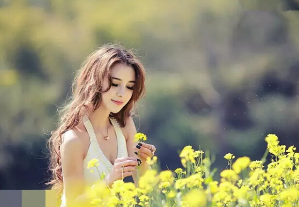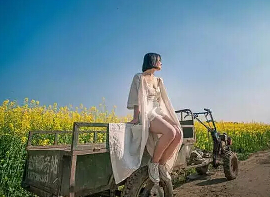 1、走進菜田,依然選擇低機位拍人物特寫,那既然是到了菜田里面,人和景就得都有所顧及,那究竟是人襯景,還是景襯人就不好說了。而低機位的作用就是能把花拍得高大上一點,這一點尤其在花不是很多得情況下非常適用,即算是在你自家得菜地里,只要有一小戳菜花,都能拍出花海的感覺,簡直是沒時間出門的姑娘們的朋友圈秀恩愛必備。