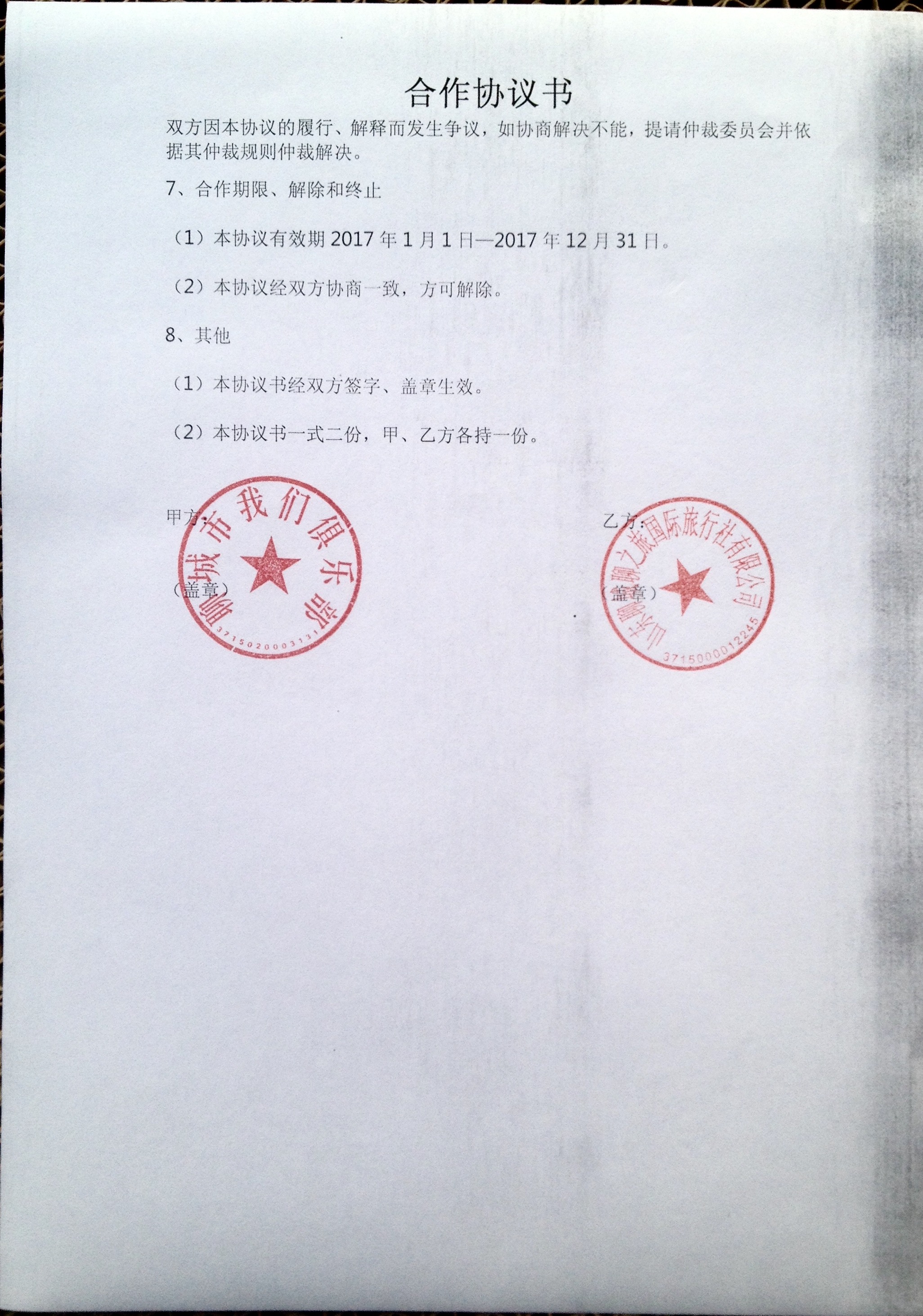 為響應國家政策號召,聊城市我們俱樂部委托我公司代理活動事宜,雙方經過友好協商,本著互惠互利、優勢互補的合作原則,達成以下協議。
