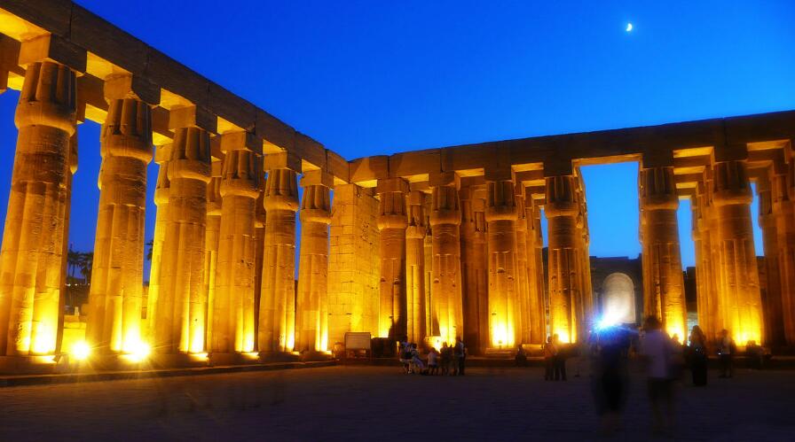 參觀后返回游輪,前往盧克索,途經伊斯納水閘門,此時會有很多當地販賣的小船靠近游輪,非常熱鬧。抵達盧克索后,游輪靠岸停泊,乘車前往參觀盧克索神廟,習近平主席訪問埃及時,埃及總統就在這里接待。晚上燈光一打,盧克索神廟不同凡響,像希臘神殿,像歐洲的廣場,氣勢十足又安靜莊嚴,天空孤星伴月,千年歷史的積淀讓人安詳寧靜。參觀結束后返回游輪休息。