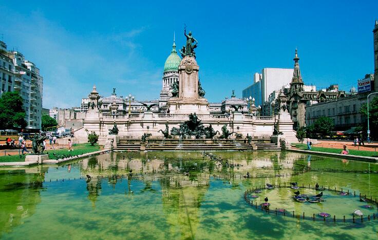 早餐后,游覽布宜諾斯艾利斯北區,驅車經過Lopez、 Olivos和總統官邸,沿岸欣賞高級住宅區秀麗景觀。隨后至老虎洲,搭乘游艇暢游巴拉那河,感受優美的自然景觀,觀賞兩岸旖旎風光。它是由巴拉那河和烏拉圭河流入阿根廷境內的銀河而形成的三角洲區域,生態保護嚴格,生態環境良好,被譽為“南美威尼斯”。隨后參觀五月廣場、有粉紅宮之稱的總統府、都會主教堂、國會大廈、路經世界最寬的七九大道和獨立紀念碑。