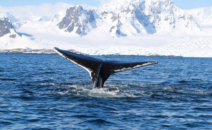 在南極的潘諾拉航道上,彼得曼島是最精彩的風景,因為可以看到海中王者-鯨魚。彼得曼島附近總有鯨魚出沒,它們巨大的身姿隱藏在這片深邃極冷的海中。