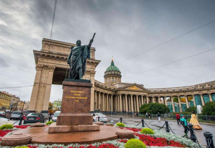 【喀山大教堂】(外觀約10分鐘)俄羅斯第一座由俄羅斯建筑師修建的歐洲風(fēng)格的教堂,也是圣彼得堡最靈驗(yàn)的東正教教堂。半圓型的柱廊由94根圓柱組成,面向大街,環(huán)抱廣場。柱廊前面矗立著俄軍統(tǒng)帥庫圖佐夫紀(jì)念碑和俄國陸軍元帥紀(jì)念碑。教堂里有庫圖佐夫墓和1812年打敗拿破侖的勝利品。喀山圣母像曾經(jīng)多次顯靈。第一次顯靈于伊凡雷帝時(shí)期。