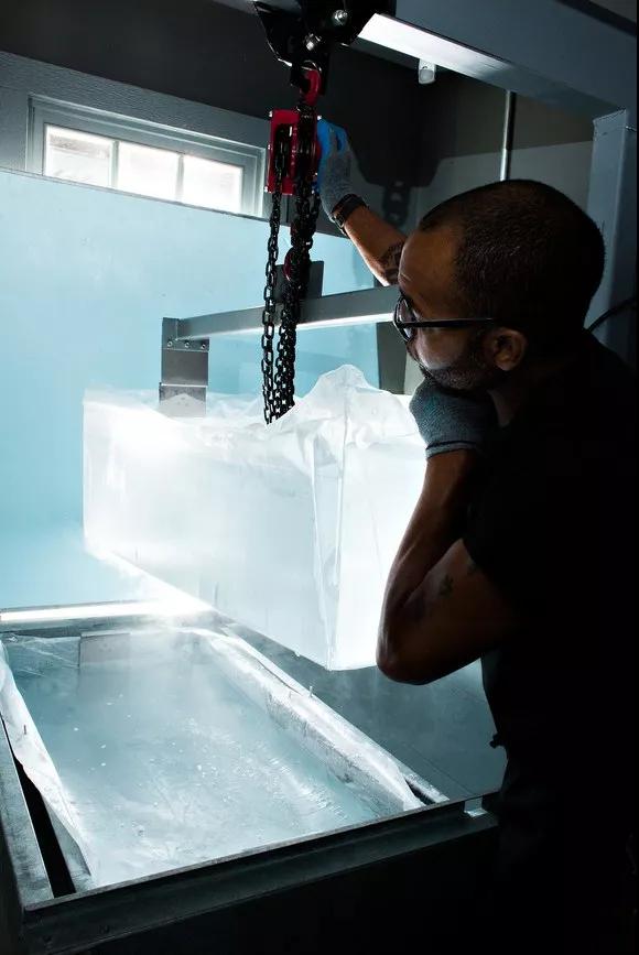 冰板制作好后,調(diào)酒師將對其進(jìn)行人工切割,不斷地切成小塊,然后再將這些小塊一一鑿成需要的形狀。如果說一個(gè)高人氣(high-volume)酒吧只使用手工制作的冰塊,那么粗略計(jì)算一下,這個(gè)酒吧每晚都需要一個(gè)調(diào)酒師專門鑿冰,并且馬不停蹄地鑿一個(gè)半小時(shí)。London Cocktail Club bars在去年一共賣出大約14萬杯老式雞尾酒,如果使用手鑿冰塊,可想而知這背后所需的人力和時(shí)間多么龐大。