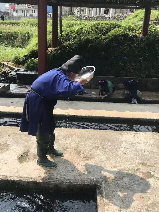走進高要村,就可以看到苗家兒女在一口泉水邊忙碌著,泉水被叫做不老泉,是為解決村民用水問題而修建的,走進觀察,便可以看到它是成“回”字型的,中間的水用來吃的,其次用來洗菜,最邊上的用來洗衣,循環往復,讓人驚奇。