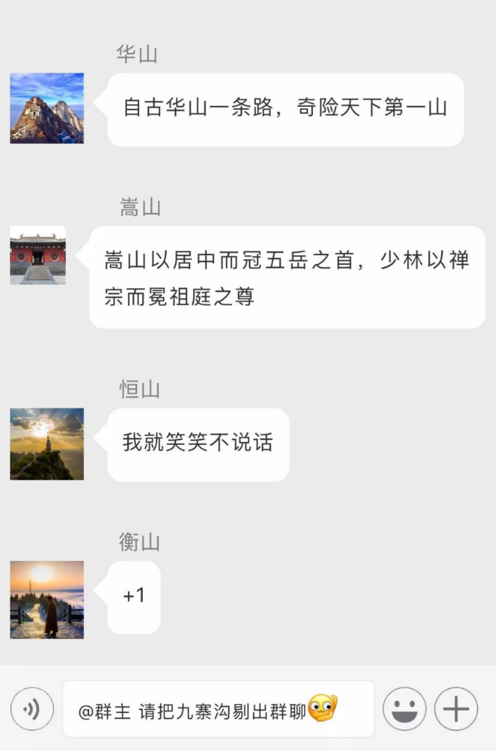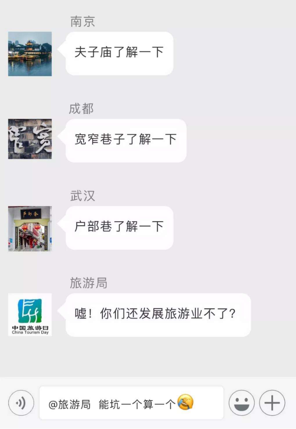 那么,一個腦洞大開的問題來了。如果把中國各大景區(qū)全部拉入一個微信群,他們會聊些什么呢?