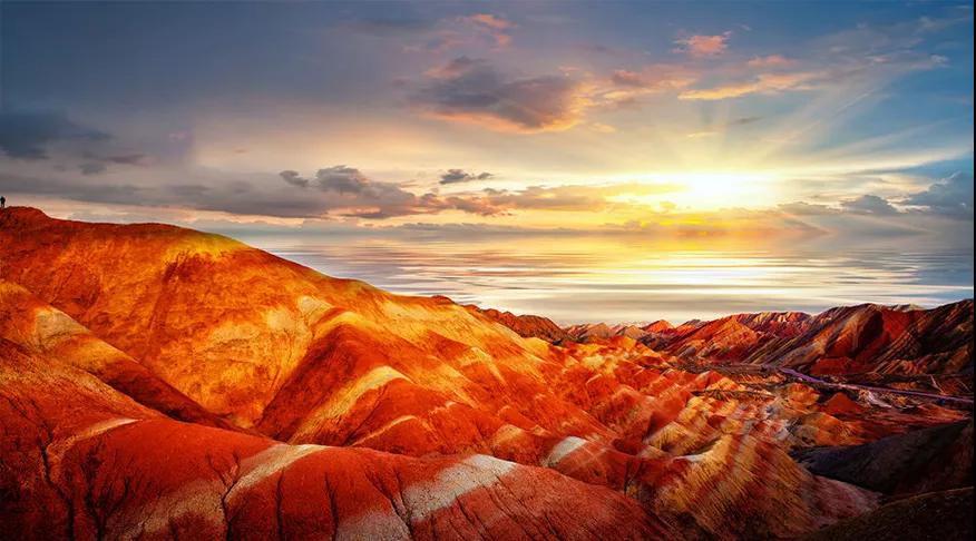 游玩過后前往張掖 [ 丹霞地質公園 ] ,這里的自然景觀得天獨厚,是中國丹霞地貌發(fā)育最大最好、地貌造型最豐富的地區(qū)之一。景區(qū)還是張藝謀的電影《三槍拍案驚奇》、姜文執(zhí)導的電影《太陽照常升起》、知名電視劇《神探狄仁杰》的外景地,2005年11月由中國地理雜志社與全國34家媒體聯合舉辦的“中國最美的地方”評選活動中,當選為“中國最美的七大丹霞”之—,如果天氣晴好,在這里可以觀賞到一場唯美的落日盛宴。感受落日的余暉落在起伏的丘陵上,晚霞般的大地與落日交相輝映,見慣了城市中的鋼筋混凝土,此時不由的心神也會感到空曠了;