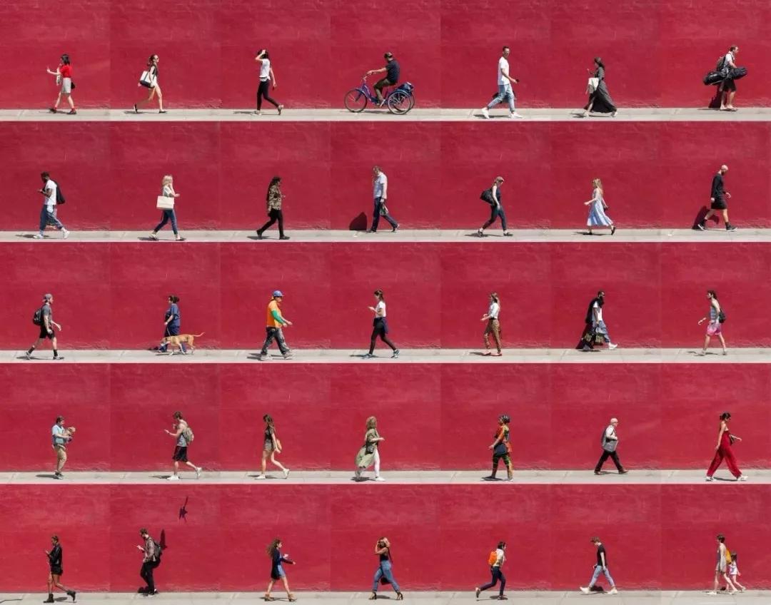 “我在城市里四處游走,有時(shí)找個(gè)地方坐上幾個(gè)小時(shí),然后在不被注意的情況下,拍下那些隨意靠墻經(jīng)過(guò)的人。”