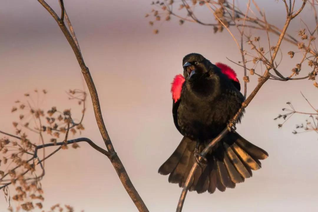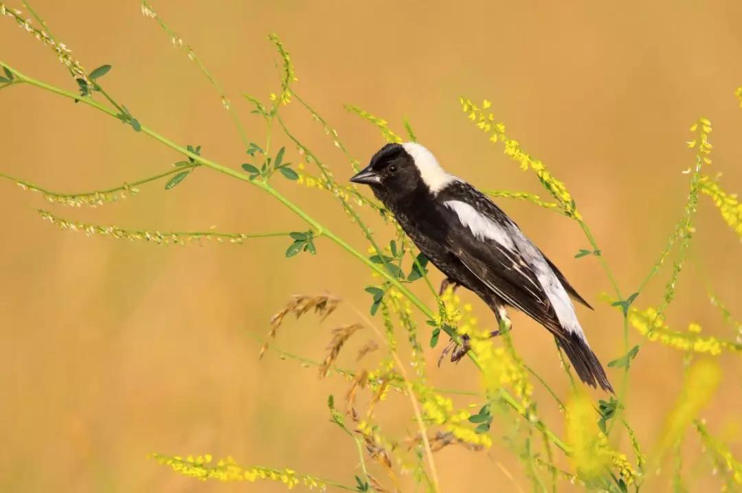 照片背后的故事:“日落時的鄧恩牧場草原變成了一片金黃色的草地,這只雄性食米鳥短暫的落在樹枝上好奇地掃了眼我的相機。他機械般的鳴唱被幾十只在我頭頂飛過的同伴回應著,我趕緊在它飛走前拍下了這張照片?!?/span>