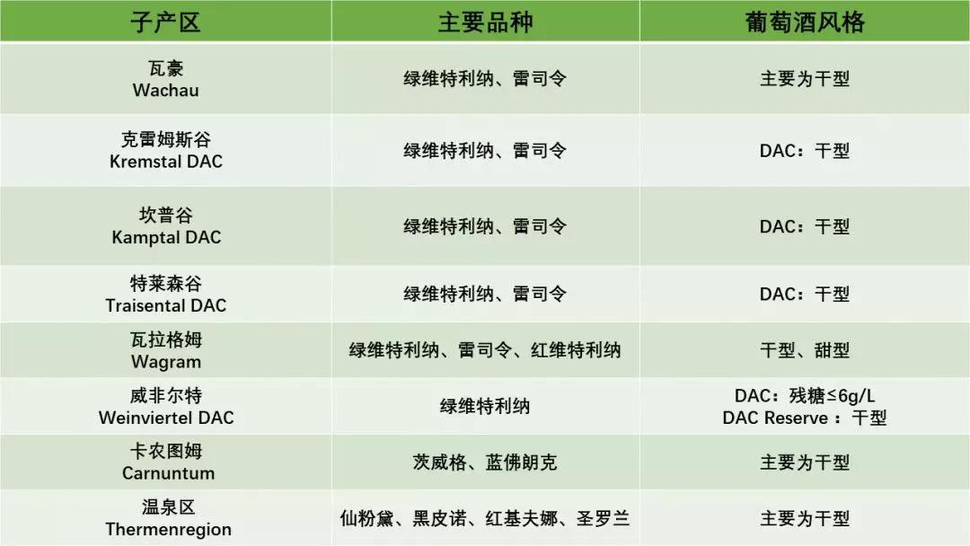 目前全奧地利4個大區下的17個子產區均獲準釀造PDO葡萄酒。