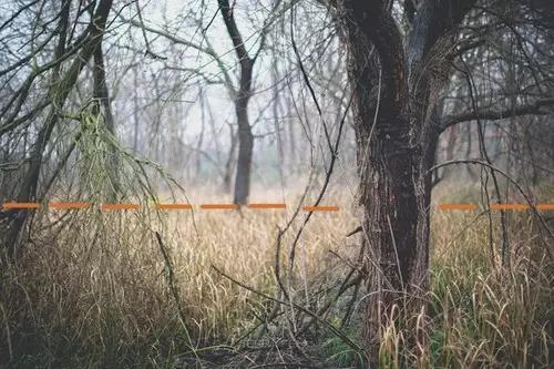 說到這里,作者還要給大家說明一下:所謂的地平線、水平線并不一定非要是肉眼很明顯的看到的一條線,它也可以是存在于攝影師腦子里的一條有意識的線條。比如,當我們在拍攝樹林的時候,很難一眼就看到水平線,只能依靠一些參照物來體現。