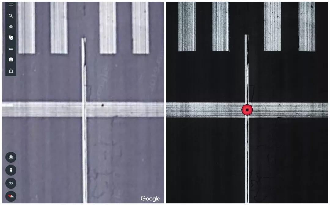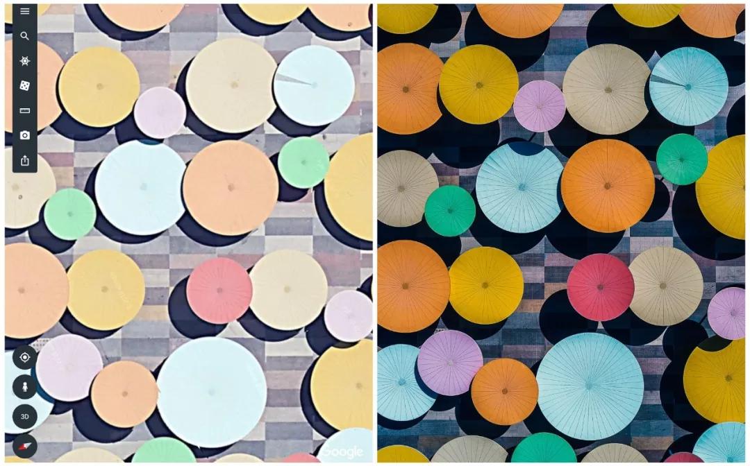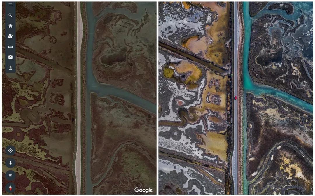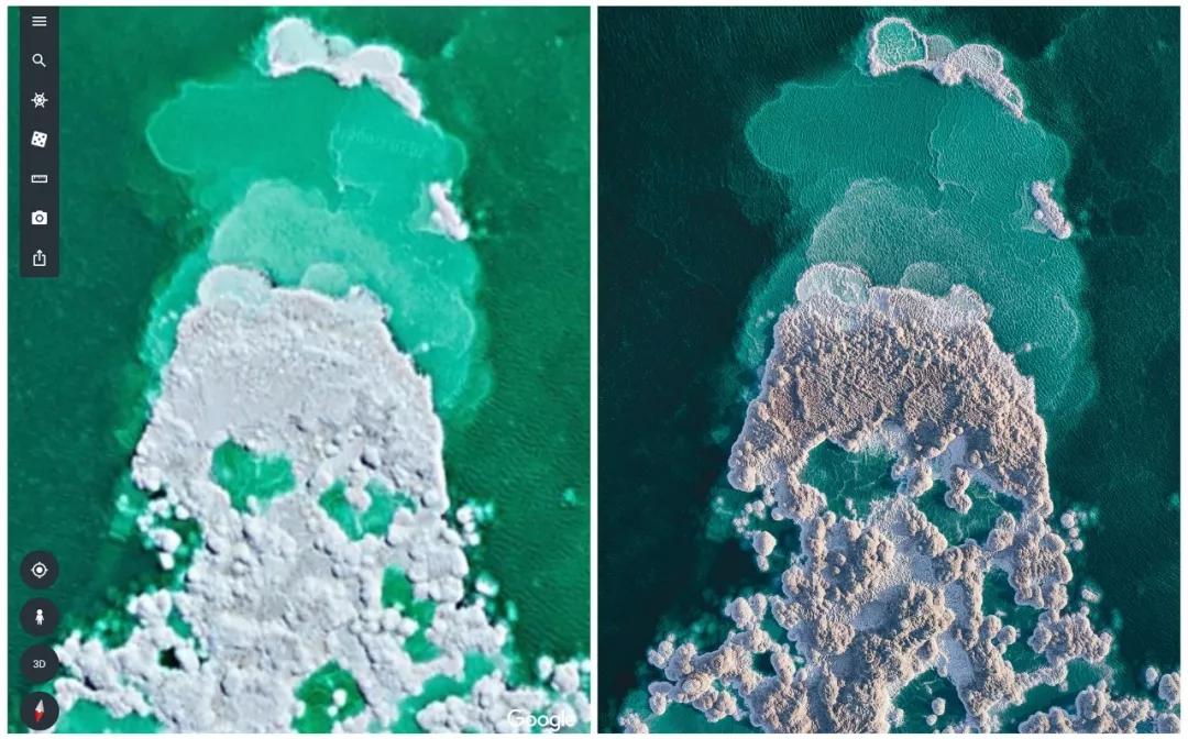 下列圖片中左圖為谷歌地球截取,右圖為實際拍攝。
