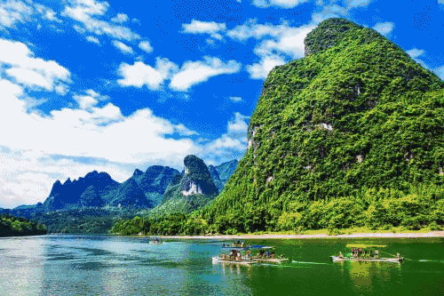 乘車赴碼頭,乘坐3星豪華貴賓船游覽世界最美河流AAAAA級景區百里【漓江風光】(船游時間約240分鐘,根據當天天氣及水位情況而定),可觀奇峰倒影、九馬畫山、黃布倒影、碧水青山、牧童悠歌、漁翁閑吊等美景——一切都那么詩情畫意。奇山秀水美麗風光更讓您仿佛置身于“船在山中行,人在畫中游”的夢境中。