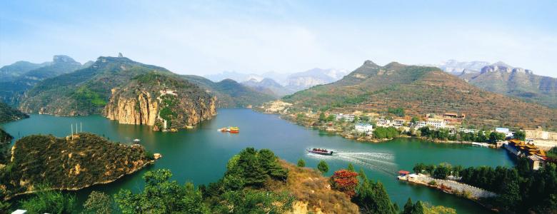 京娘湖 位于河北省邯鄲市西北60公里處活水鄉境內,位居太行山脈腹地。因宋太祖趙匡胤千里送京娘的凄美愛情故事而得名,景區成因于19億年以來多次大的地質運動,演化成如今奇峰峻巖之險,綠水丹崖之美。森林覆蓋率達98%以上,常年平均氣溫19攝氏度,是避暑休閑佳地。千嬌百媚的美人池和貞義島矗立昂然的公子峰相守相望,仿佛摯情京娘與宋太祖趙匡胤千年剪不斷理還亂的情緣,故事依舊在山水之間,在光影之間,在你我之間傳頌。