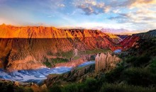 紅山大峽谷,別稱安集海大峽谷,位于沙灣縣安集海鎮以西的天山北坡,發源于天山山脈。安集海大峽谷由紅、黃、藍、綠、褐和紫色的砂石形成斷層,經歷上萬年的風雨侵蝕和水流沖刷,大自然的鬼斧神工,就造就出一條色彩多變的幽深巨谷,層層褶皺卓顯出無比的蒼勁和壯麗。經過長年沖刷,在通古特附近沖出天山峽谷,在天山北坡下形成了規模宏大的沖擊扇,河谷沖擊扇規模宏大,以傘形向北張開,甚稱地質奇觀。