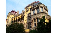到達花石樓后自由游覽花石樓及八大關,預計游覽1小時。花石樓之所以叫花石樓,主要是因為其內部使用“滑石”作為墻壁內飾裝飾的,因為滑石硬度低,很大一部分墻面保存的不好,被人為刻上了文字。連每個房間的基本功能都看不出來。花石樓的外觀保存十分好,洋樓城堡式的設計。還有一點就是它的外部建筑材料是花崗巖。