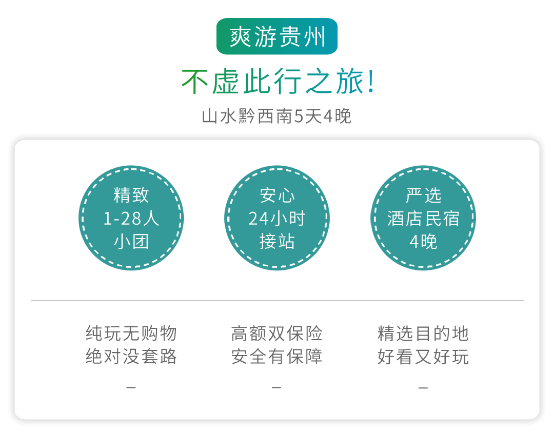 全天貴陽集合,我們貼心贈送24小時接機接站服務(貴陽龍洞堡機場、貴陽北站、貴陽火車站)。若時間合適,可自愿參加我們贈送項目--【老貴陽City Walk 半日游】
