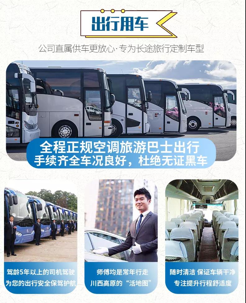 1、關于車輛交通:目前四川旅游市場8座以下車輛無法辦理旅游牌照,請游客知悉,以此理由提起的投訴我方拒不受理,望您諒解。