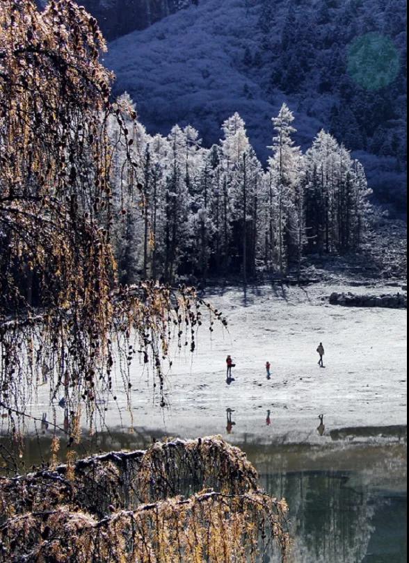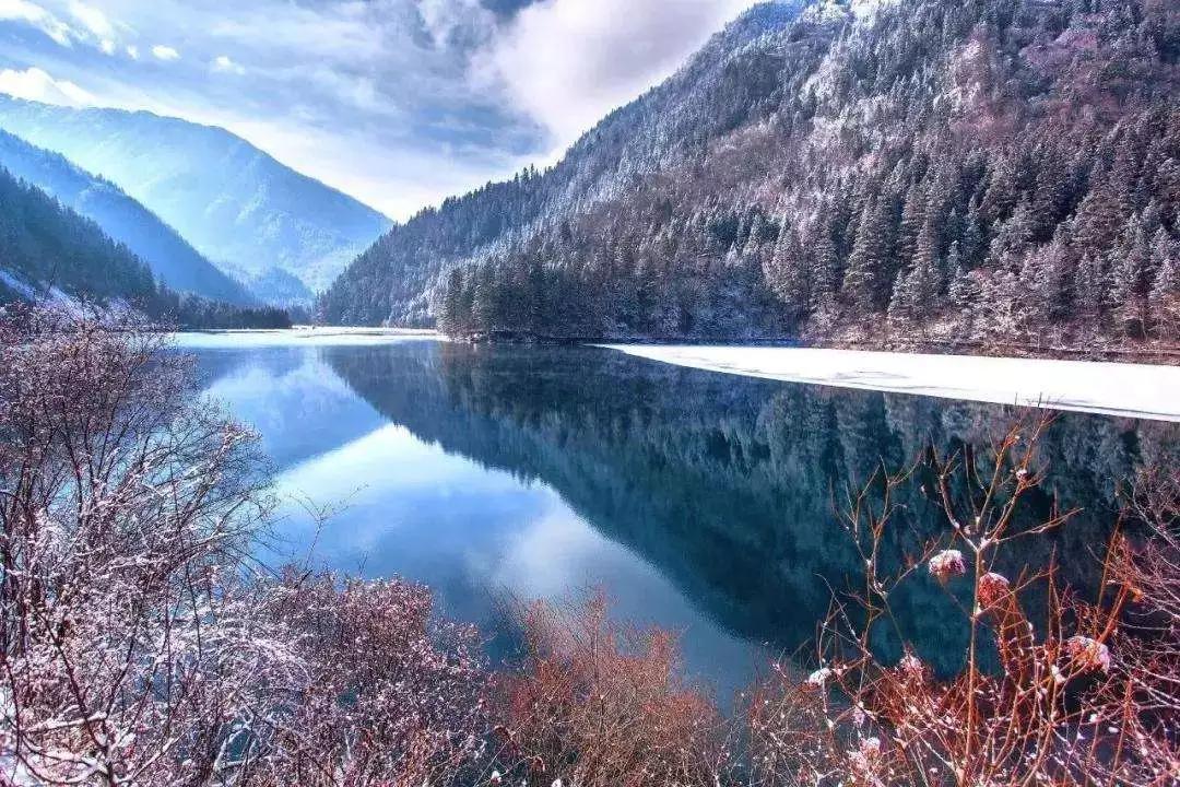 隨著季節的變化,九寨溝也呈現出不一樣的風姿。待入冬,莽莽林海都覆上皚皚白雪,林海雪原似玉樹瓊花,潔白、高雅,是觀賞九寨六絕之“藍冰”和“雪峰”的最好時機。