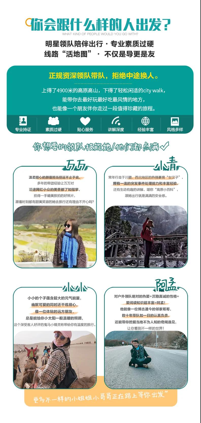 私人訂制:我們業務范圍囊括了全國各大城市,川西、西北、東北,在路上永遠有我們的身影。我們將為每一個有定制需求的你策劃出獨屬于自己的完美旅行。