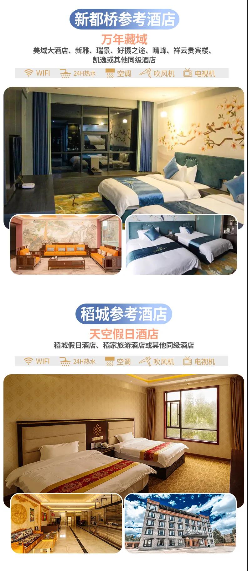 ? 贈送:特色贈送甲居藏寨藏家晚餐、高原特色牦牛湯鍋;贈送旅游三寶、魔術(shù)頭巾、礦泉水緩解旅途疲勞;贈送藏地撒隆達(dá);贈送價值98元圣地旅拍精致木質(zhì)相框&照片;贈送稻城專業(yè)攝影師現(xiàn)場教學(xué)夜拍星空直出大片,沒有星星時則教拍流光大片;10人以上贈送甲居藏寨篝火晚會;贈送成都市區(qū)24小時接機(jī)/接火車服務(wù);贈送項目不用不退。