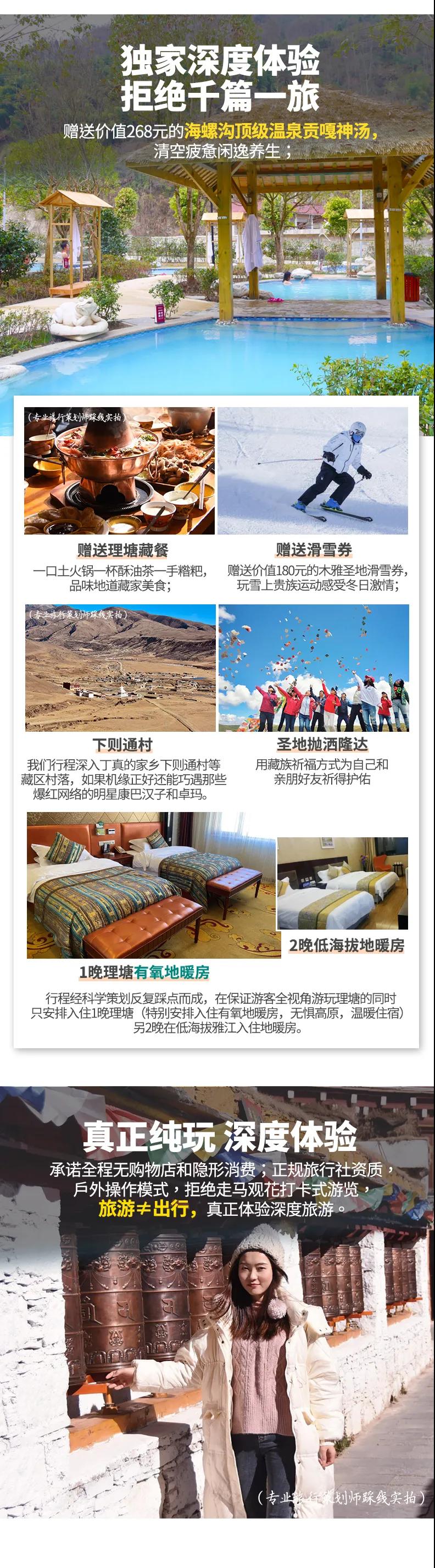 l 贈送價值268元/人的海螺溝頂級溫泉貢嘎神湯體驗;