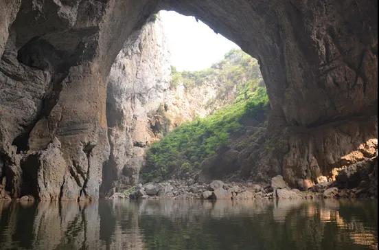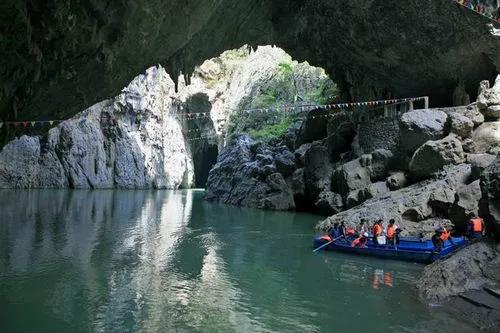 早餐后,乘車約2小時抵達【九洞天景區(qū)】(游覽時間約3-4小時)景區(qū)生態(tài)景觀秀美、溝壑縱橫、植 被發(fā)育、伏流明暗交替,洞洞相連,組合成集溶洞、伏流、天窗、天坑、峽谷、天生橋、懸崖、絕壁、峰叢幽谷等為一體的雄奇瑰麗的巖溶大觀。在這一段長約2公里的六沖河河道上,箱形切割頂板 多處塌陷,形成了多個形狀、大小各異的天窗、天坑,是已發(fā)現(xiàn)的天窗天坑最密集的溶洞群,是可供乘船游覽最高大的溶洞群。