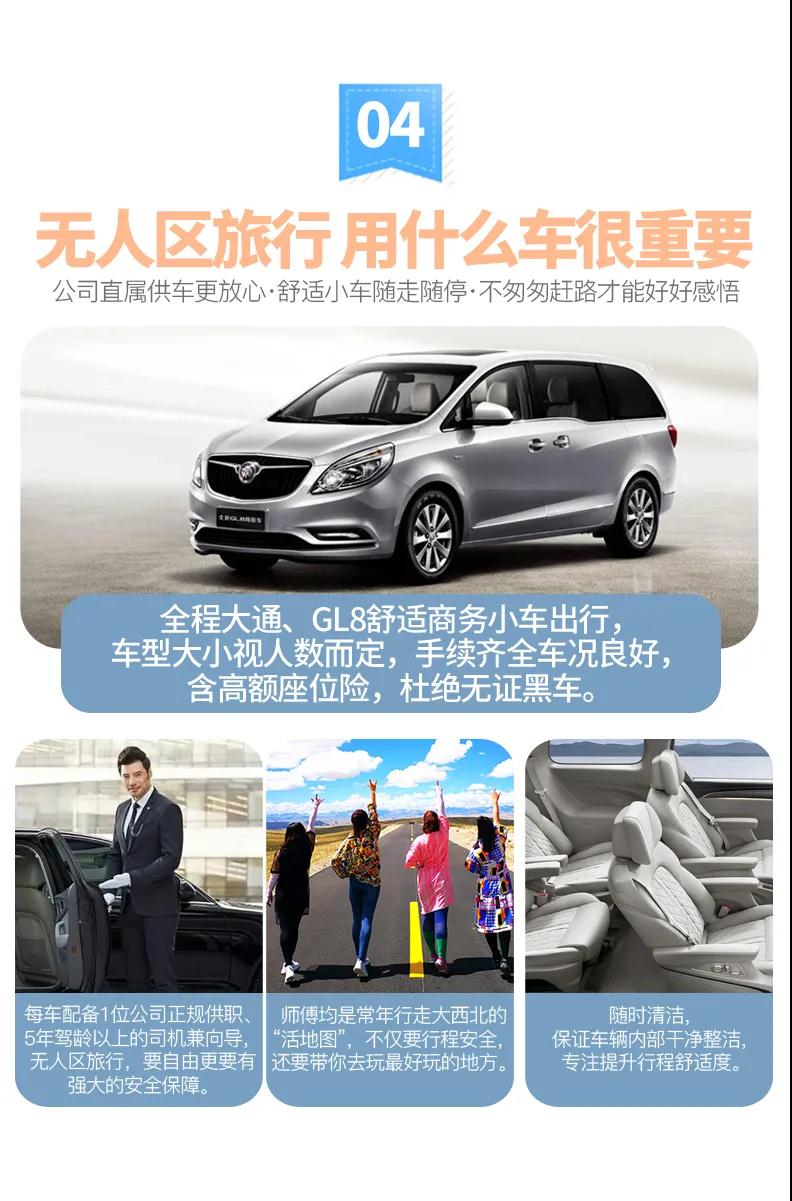 5、贈送:贈送西寧市區24小時接機/接火車服務;贈送戶外魔術頭巾、旅游三寶(頸枕耳塞眼罩)、礦泉水。(贈送項目不用費用不退)