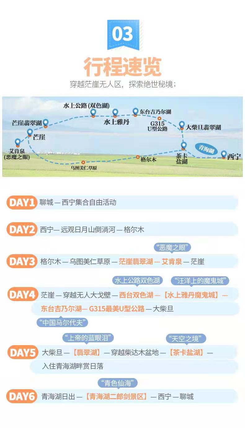 艾肯泉+水上雅丹+茶卡鹽湖+大柴旦翡翠湖+茫崖翡翠湖+東臺吉乃爾湖+西臺雙色湖+青海湖+G315U型公路