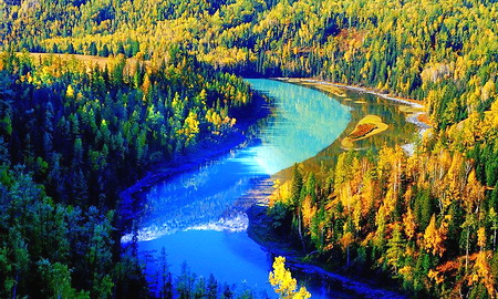 后前往【五彩灘】(含門票)五彩灘一河兩岸,南北各異,是國家4A 級景區。我國唯一的一條注入北冰洋的河流――額爾齊斯河穿其而過。與對岸蔥郁青翠的河谷風光遙相輝映,可謂“一河隔兩岸,自有兩重天”。而南岸卻是綠樹葳蕤,連綿成林,遠處逶迤的山巒與戈壁風光盡收眼底后座大巴車前往哈巴河酒店。游覽結束后前往北屯或福海入住酒店。