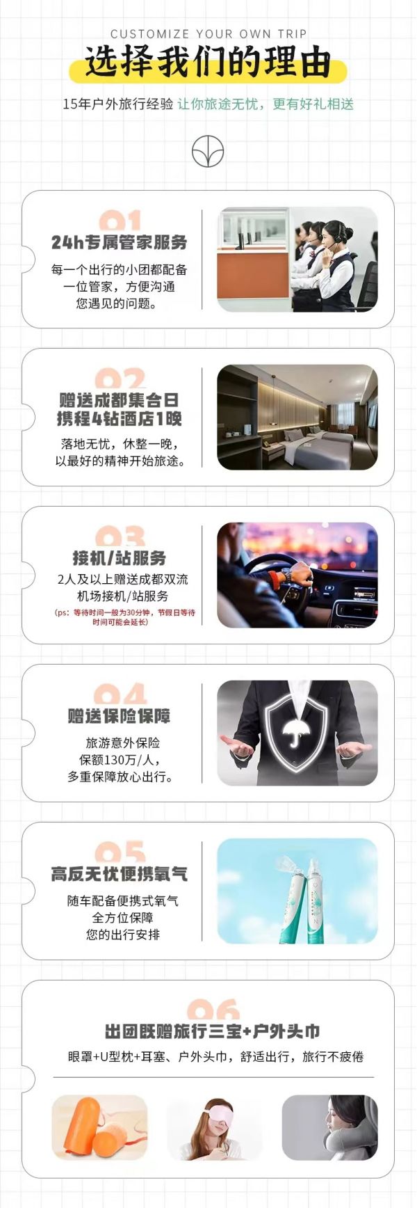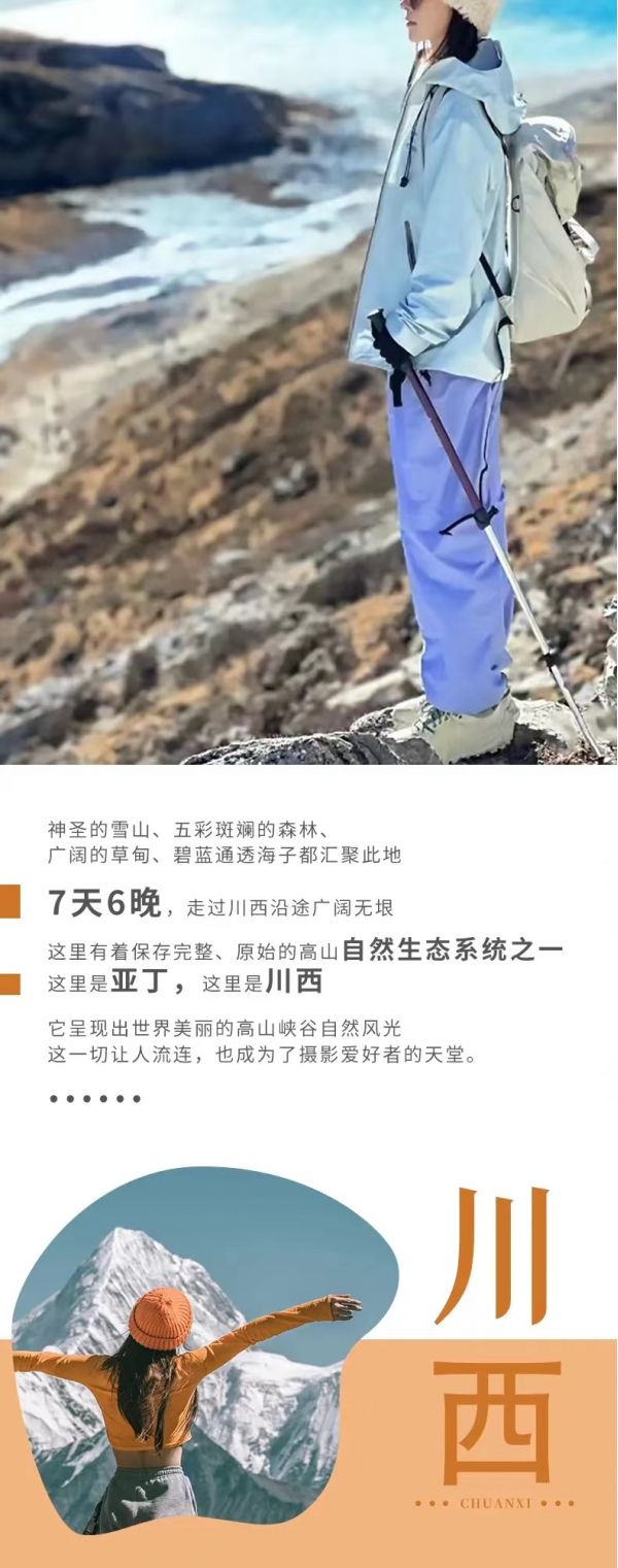 私人訂制:我們業(yè)務(wù)范圍囊括了全國各大城市,川西、西北、新疆,在路上永遠有我們的身影。我們將為每一個有定制需求的你策劃出獨屬于自己的完美旅行。